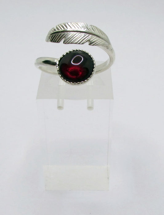 Sur commandeBague ajustable plume et cabochon de grenat