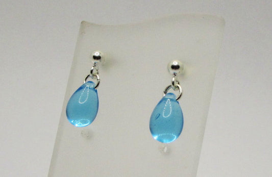 Boucles d'oreilles Argent 925 et gouttes en Verre bleu turquoise