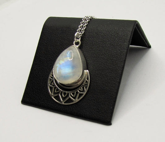 Boucles d'oreilles pendantes cabochons labradorites blanches