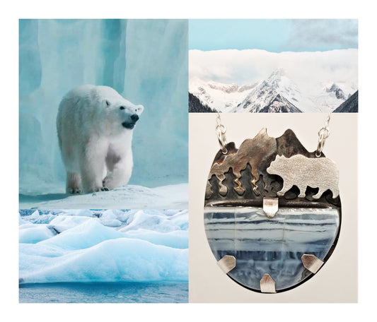 Sur commandeCollier ours polaire, opale bleue owyhee